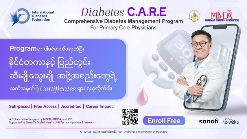 📌 “ကမ္ဘာ့ဆီးချို၊ သွေးချိုရောဂါ ကာကွယ်ထိန်းသိမ်းရေးနေ့” အထိမ်းအမှတ်အဖြစ် မြန်မာနိုင်ငံဆီးချိုသွေးချိုရောဂါအသင်း (MMDA) နှင့် OSC ဆေးရုံကြီးတို့မှ ပူးပေါင်းကျင်းပမည့် ဆီးချိုသွေးချိုနှင့် ဟော်မုန်းဆိုင်ရာ ကျန်းမာရေးအသိပညာပေးပွဲအခမ်းအနား